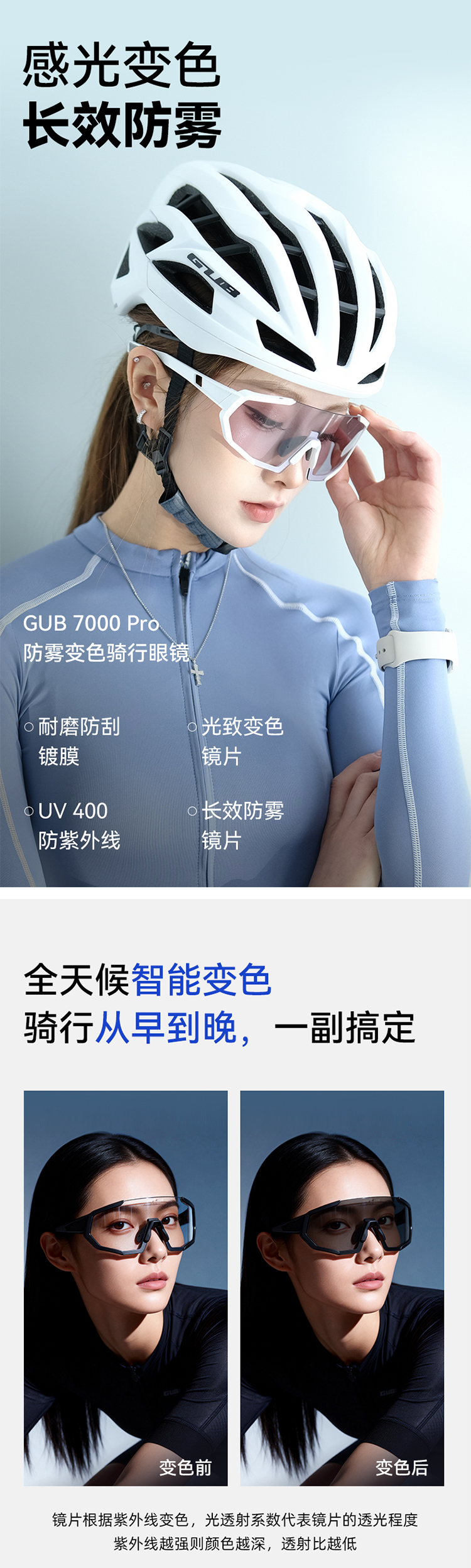 颜色:哑黑/透明变色片、亮白/透明变色片、樱花粉/透明变色片、消光灰银/透明变色片、透砂白/透明变色片、水晶灰/透明变色片、哑黑/星空银偏光片、亮白/星空银偏光片、亮白/渐进粉变色片、亮白/渐进蓝变色片、哑黑/渐进粉变色片