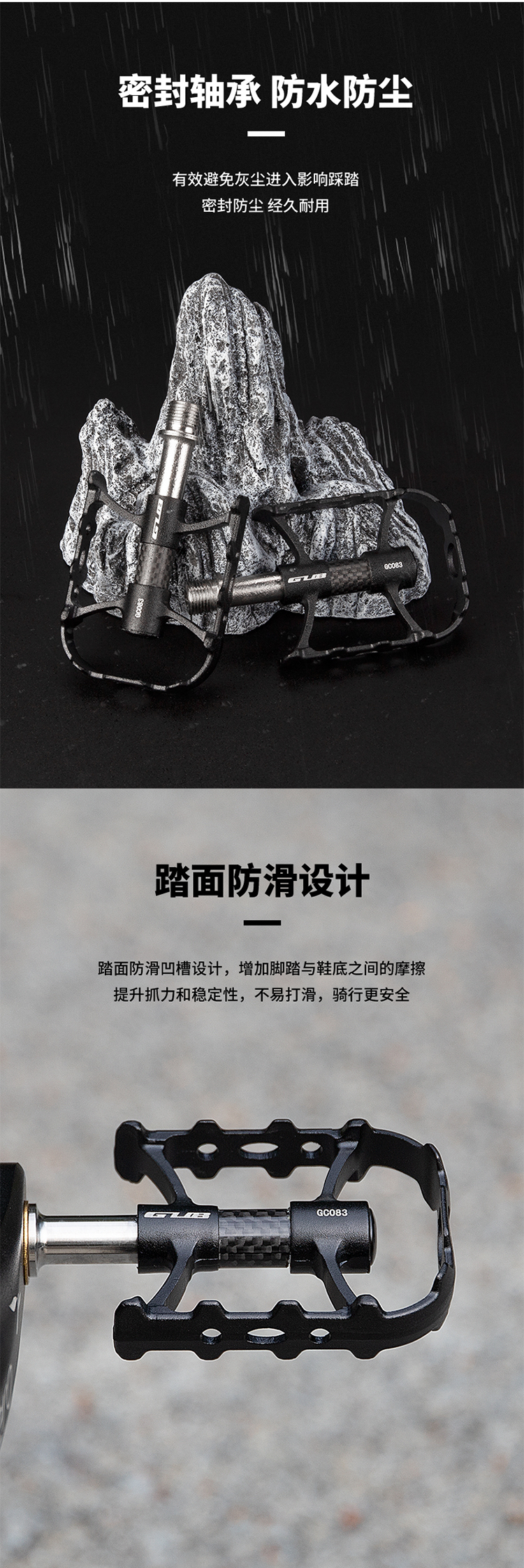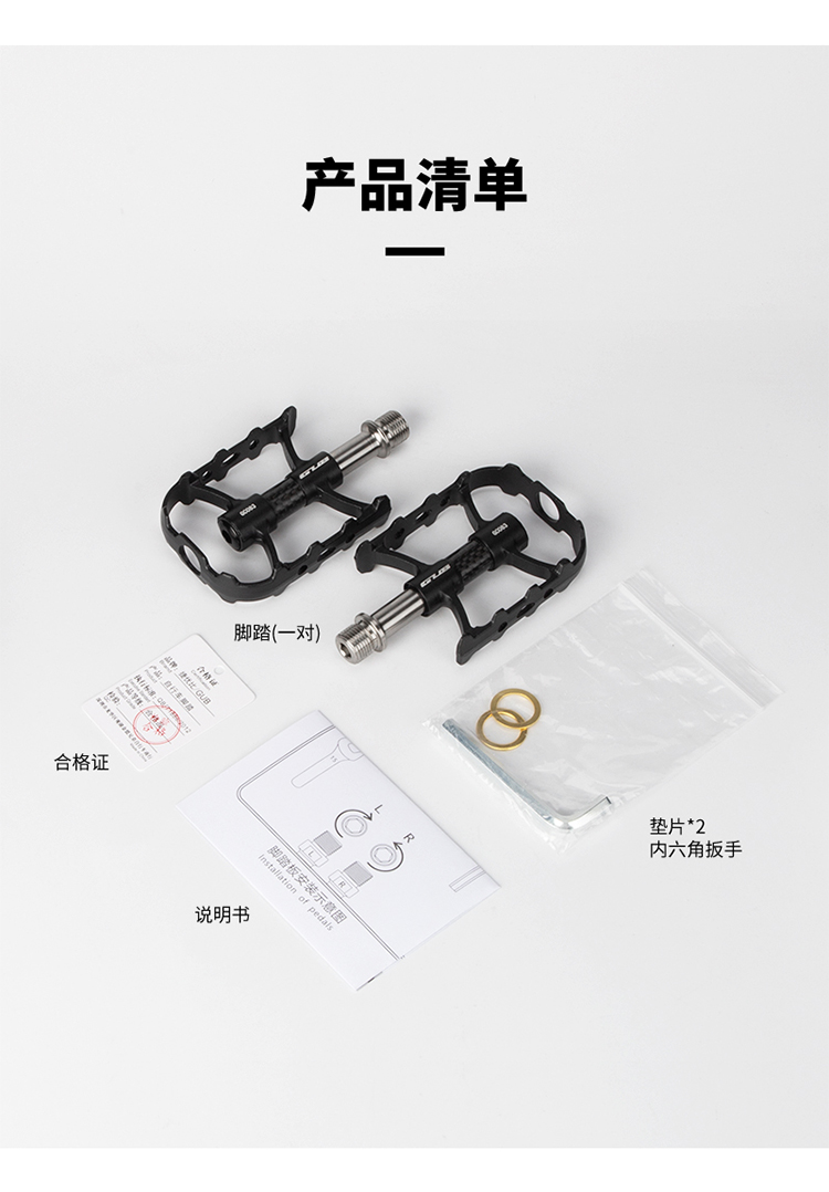 材质:铝合金脚踏主体+碳纤维中管+钛合金轴芯