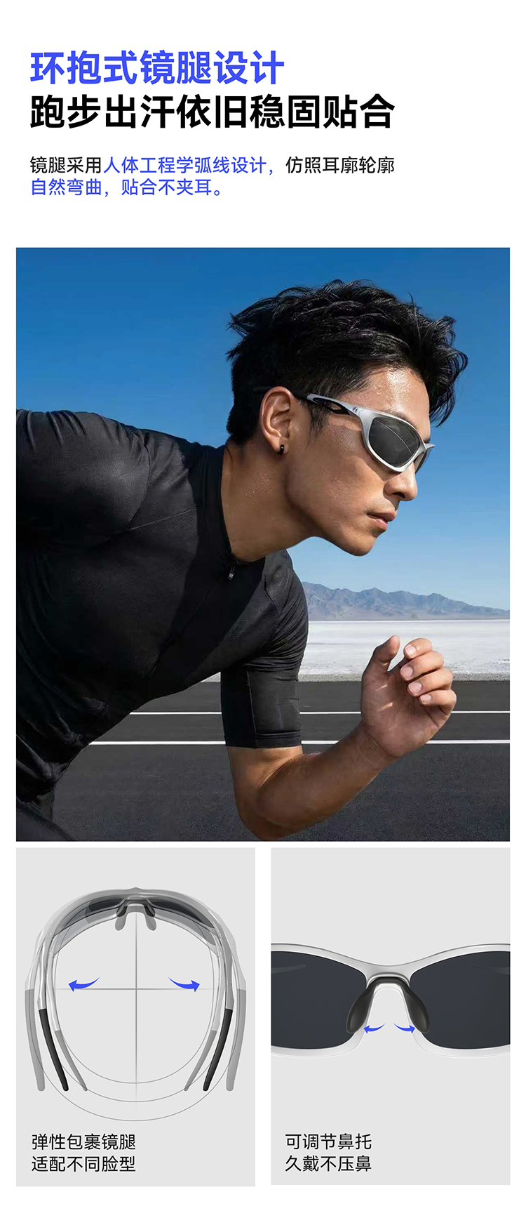 卖点:REVO炫彩镀膜(*仅REVO镜片具备REVO镀膜功能)、独特镂空镜腿设计、可调节鼻托、防滑橡胶镜腿、轻量化