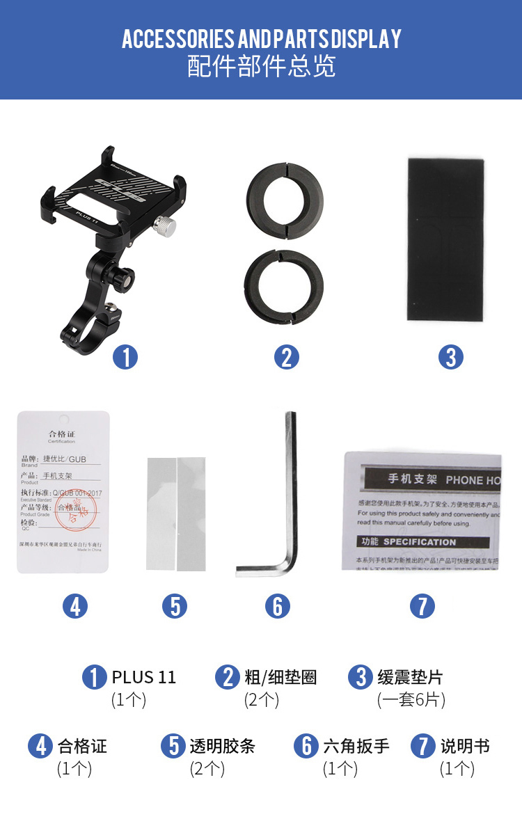 特点:全铝合金架体,双重调节,支持前后角度及平面360度调节,支持手机架垂直固定,让手机秒变运动相机,记录一路精彩!高兼容性不挑手机型号,自行车、电动车等都可使用!