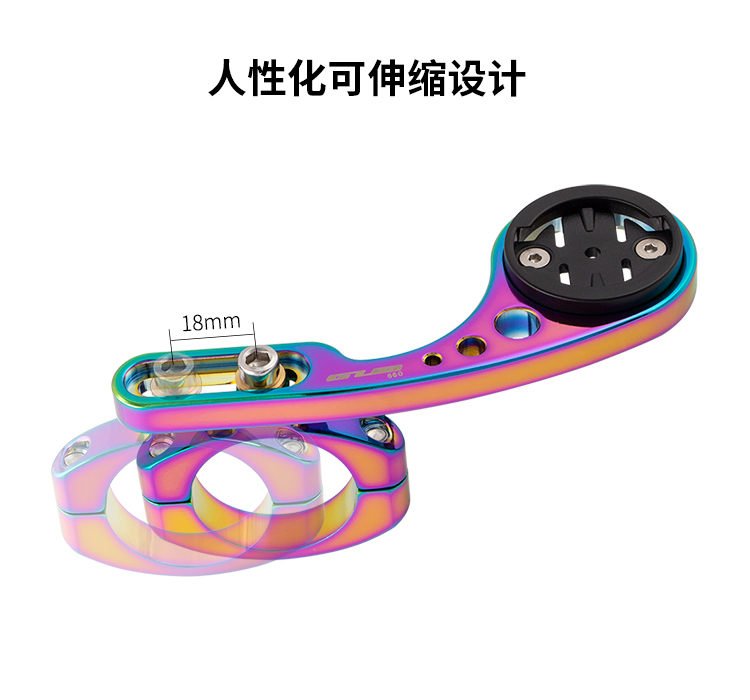 安装在车把上,可伸缩设计,兼容佳明码表,使用附带的配件可兼容百锐腾码表、猫眼码表,另标配运动相机转接头和电筒转接头。