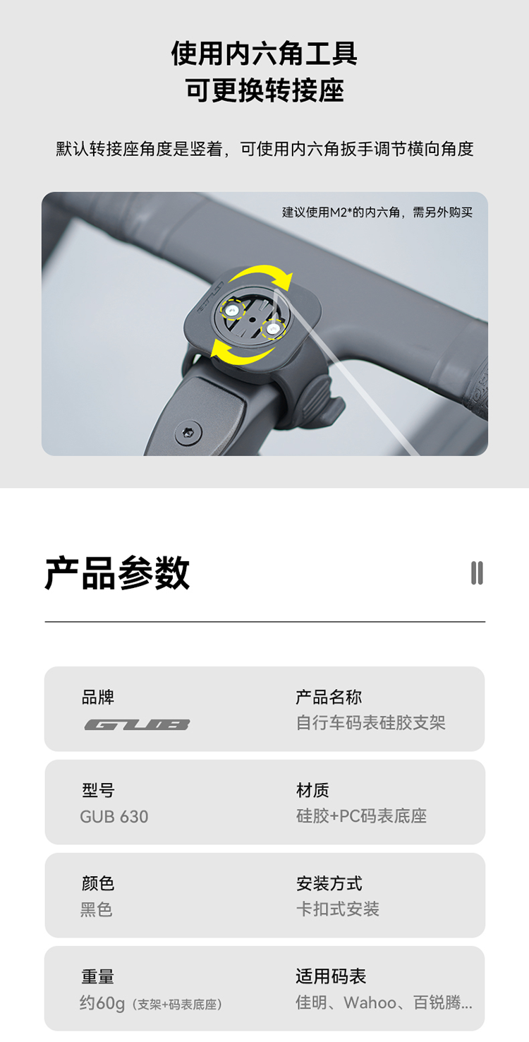 特点:硅胶架体,不伤车把,安装方便,兼容多种码表