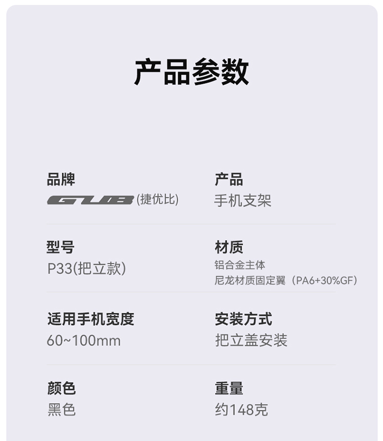 名称:GUB P33 快拆式手机支架(把立款)