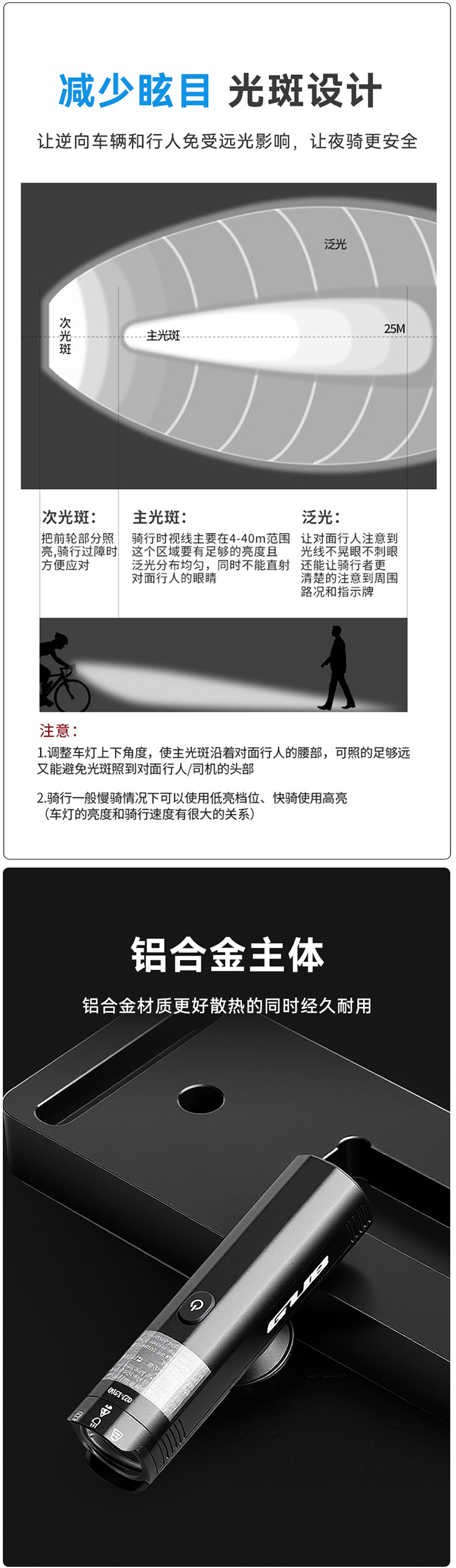 灯光模式:高亮/中亮/低亮/节能/慢闪/快闪